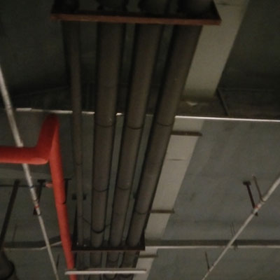 4、打眼固定管線應(yīng)打眼加塞木楔用銅線及管卡固定。避免在地面開槽布管,應(yīng)將管線安裝于吊頂內(nèi)并做保溫處理,這樣有利于以后維修及預(yù)防吊頂內(nèi)管線凍裂或凝露滴水。